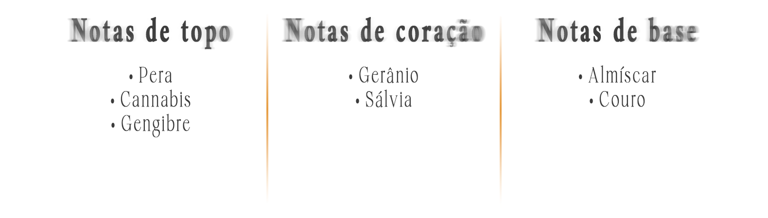 - Notas principais: pera, gengibre, gerânio, sálvia, couro e almíscar