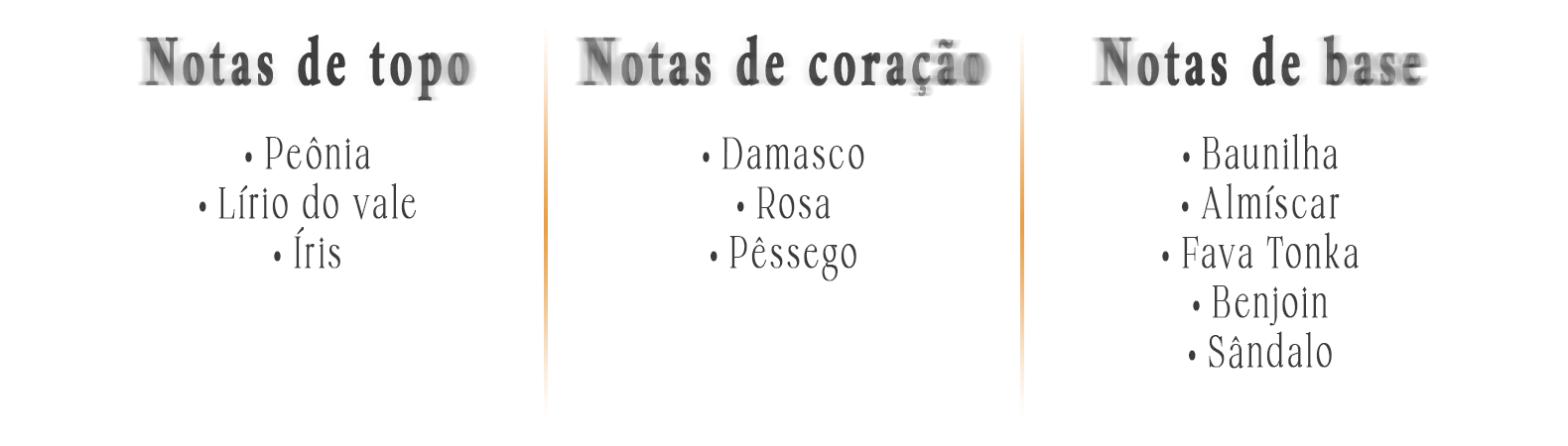 - Notas principais: cítricos, rosa de Grasse, peônia, patchouli e almíscar